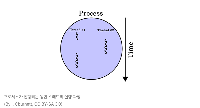 쓰레드는 프로세스와 다르게 쓰레드간 메모리를 공유할 수 있다. 쓰레드끼리 프로세스의 자원을 공유하며 프로세스의 일부 흐름이 되는 것이다.