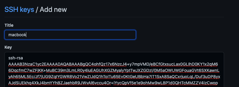 [New SSH Key]를 누르고 복사한 키를 붙여넣어 줍니다.