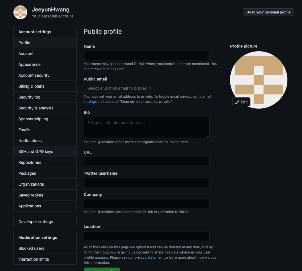 여기까지 등록하면 github 사용 가능합니다