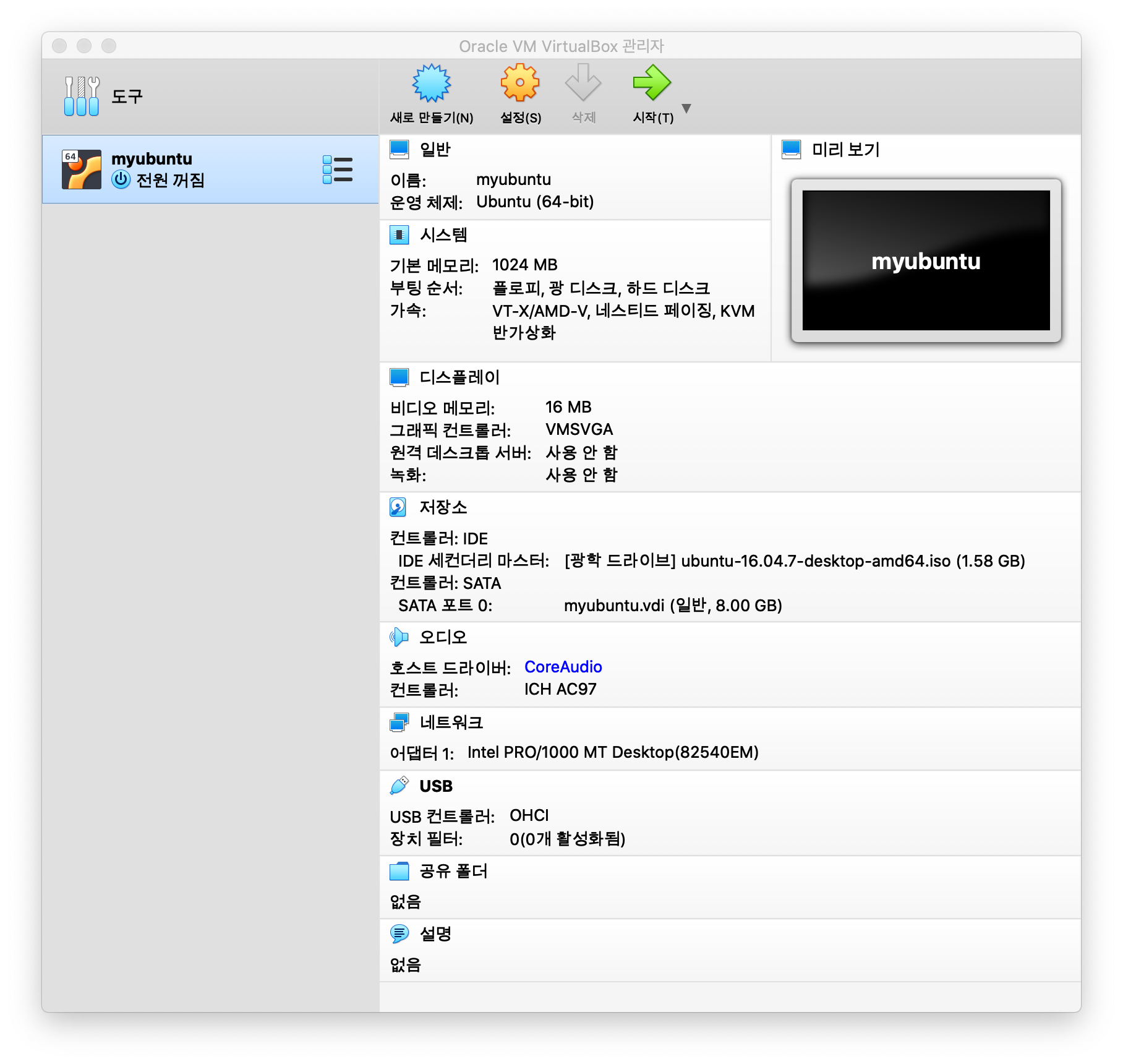 환경 : Mac OS > vitrualBox > ubuntu