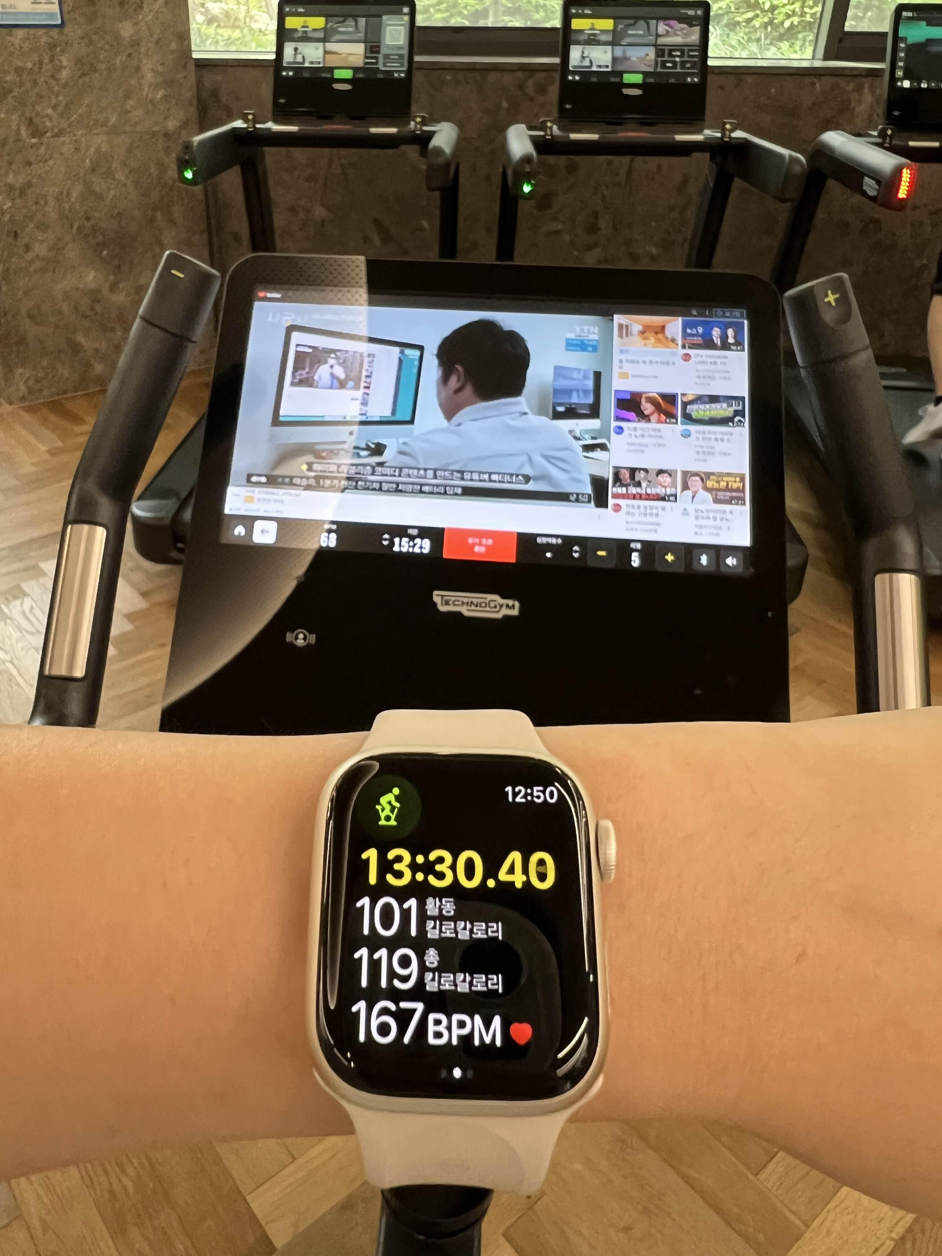 사이클은 허벅지가 버티가 어려운데, 러닝머신은 폐활량위주의 운동이라 폐가 강화되겠구나 싶었다